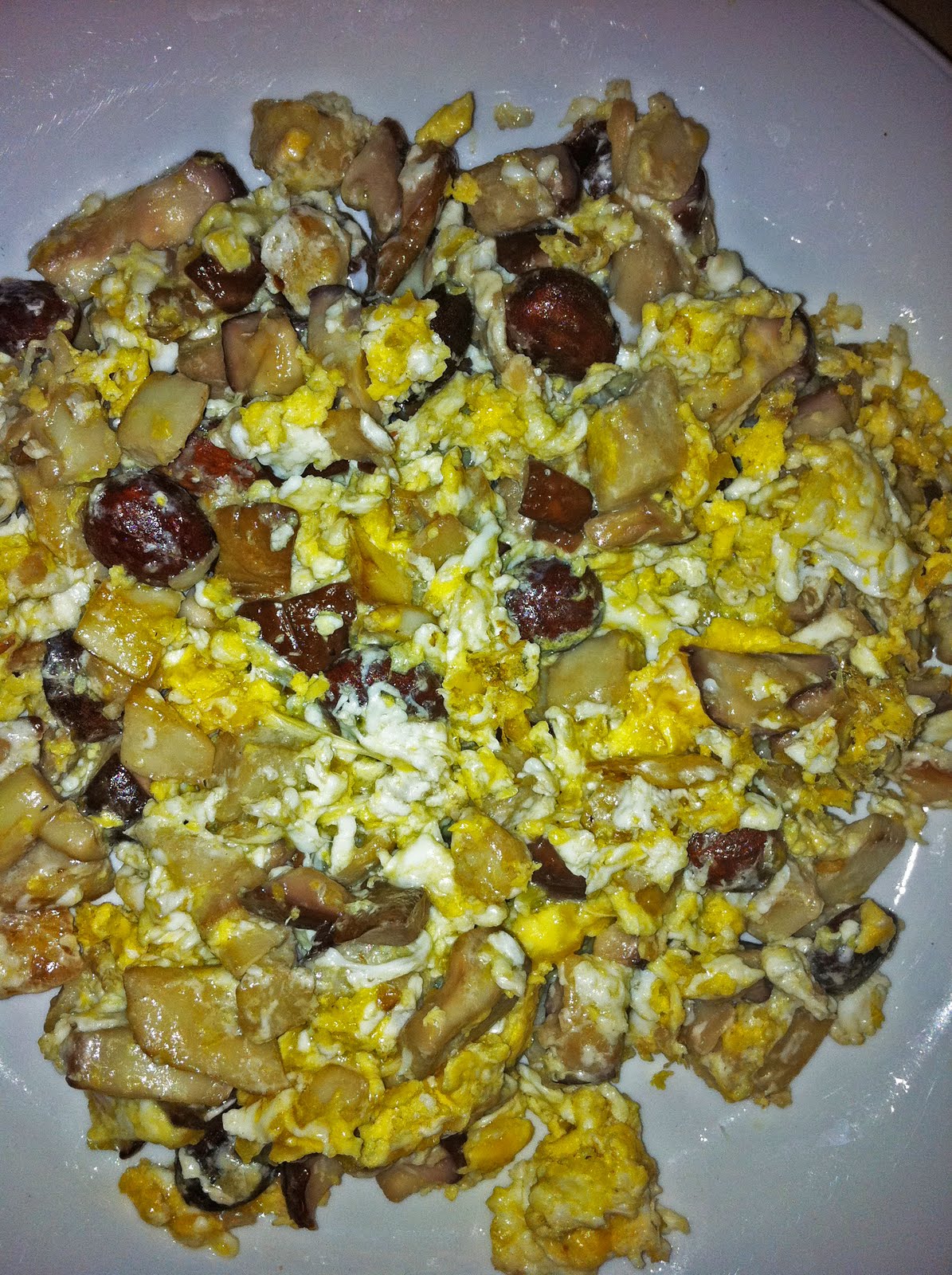 Revuelto de Boletus y almendras tostadas en aceite de olive virgen.