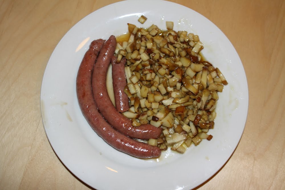 Salchichas a la cerveza con boletus salteados con aceite de oliva virgen, sal y miel de roble.