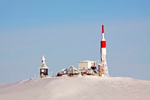 La curiosa y llamativa estación de repetición de señal de TV y radio, situada en la Bola del Mundo o Alto de Guarramillas 2.265m,
