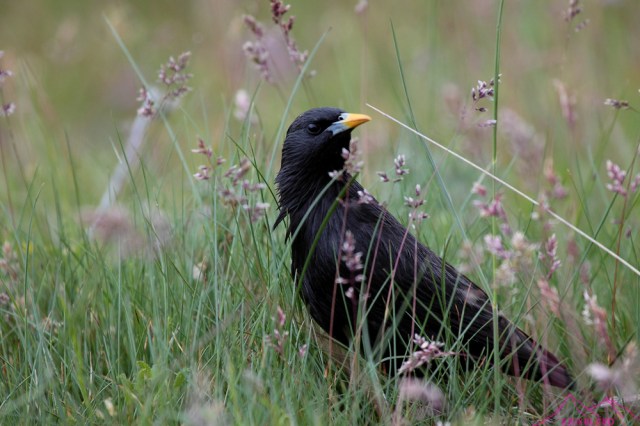 Mientras se hacen esperas para fotografiar otras especies te puede aparecer de todo….y este día fué lo único que bajó cuando esperaba a los buitres….algo es algo…. Un banda de estorninos se acerco y aproveché para retratar a uno de ellos entre las hierbas.
