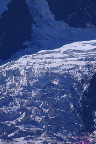Se pueden ver algunos «alpinistas» subiendo hacia la cumbre del Mont Blanc
