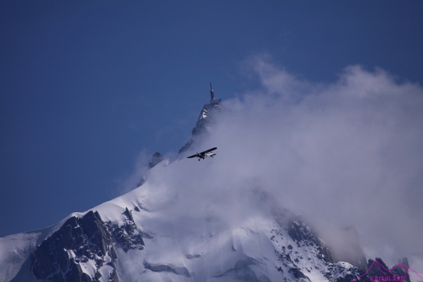 Aiguille du Midi 3842m entre nubes, con avioneta turística incluída