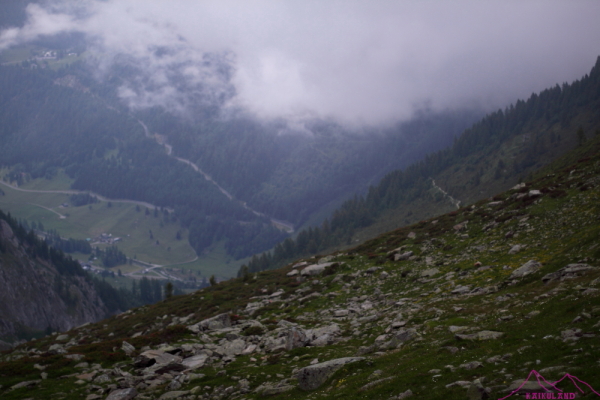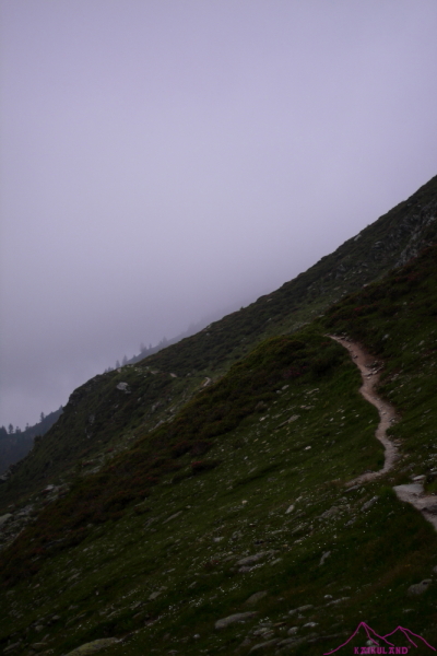 Llego al Col de Balme (2131m) en poco más de dos horas, el refugio está abierto pero tiene muy mala fama, busco el que me habían recomendado pero la niebla no me deja ver nada.