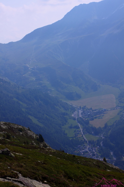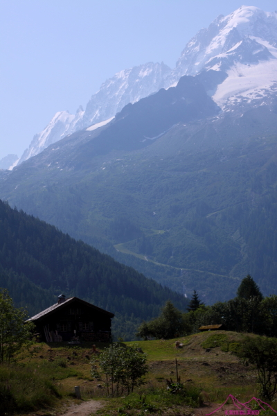 Consigo llegar a Tré-Le-Champ (1417m), desde ahí tengo que subir por carretera a Le Tour, quiero comprar comida para ir a un refugio que me han comentado los canadienses la noche anterior pero que no sirven comidas….. Tras una pesada caminata por el asfalto de 25 min llego a Le Tour (1453m), me bebo un litro de agua en una fuente que está a la entrada y relleno para la subida; no hay supermercado, o yo no lo veo, sólo un par de restaurantes y un pequeño bar donde compro un bocadillo de jamón, queso y lechuga (4.50€). Miro el telecabina que sube hacia el Col de Balme, pero he venido aquí a andar, son las 12h, pega un solazo tremendo y con esas subo por un sendero/pista que va por entre lo que son las pistas de esquí en invierno….Creo que hay una alternativa que se empieza en Tré-Le-Champ, pero yo tenía que comprar comida. Voy justito de fuerzas, en una subida monótona, aburrida, toca ponerse música y respirar hondo…