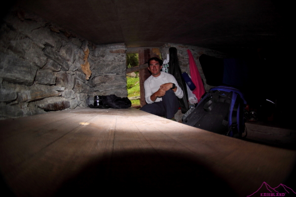 La noche es muy larga, dura, en la que no paro de moverme puesto que no tengo aislante y se me clavan los huesos en este maravilloso «colchón» de madera. Miro la hora cada 30 minutos, que es lo que duran mis cabezadas, mis giros para cambiar de posición…