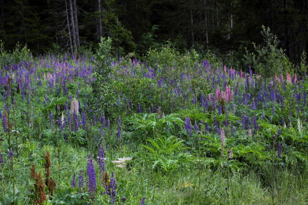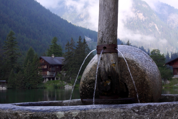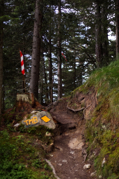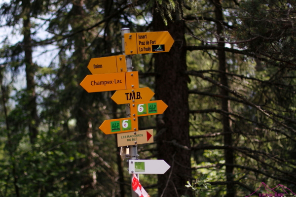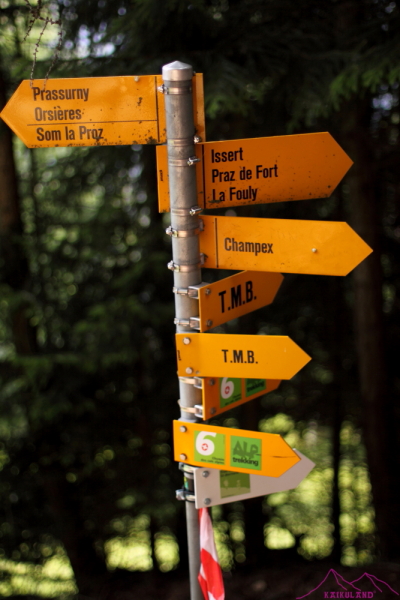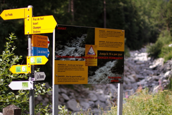 Bajada de 30 min a Champex, un camino bonito y agradable, con algunos pequeños canales de agua, abetos y flores variadas.