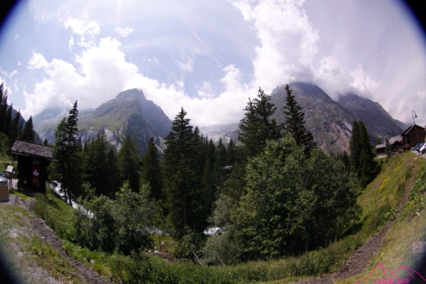 En un giro de una curva me encuentro dentro del «Camping des Glaciers», ufff…igual es aquí donde me ha reservado un amigo (Raoul «Suizo») una habitación, que detallazo, un gran amigo.