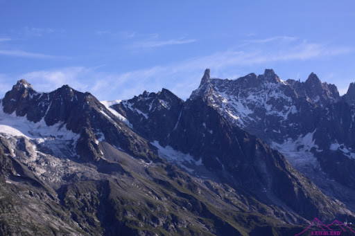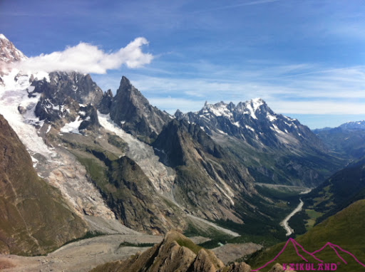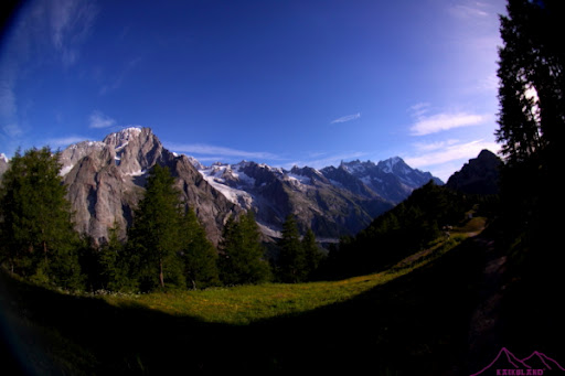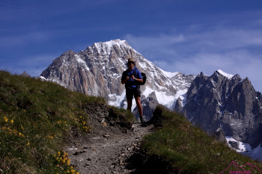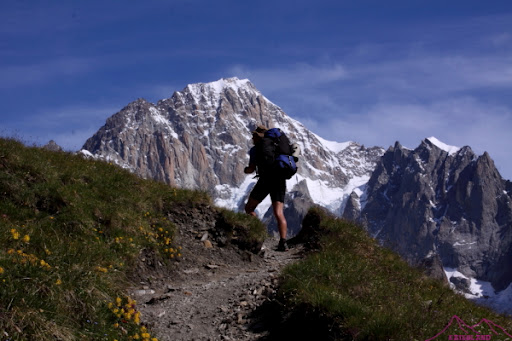 Sendero TMB, al fondo Mont Brouillard y Arista de Peuterey
