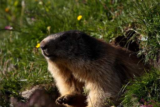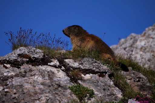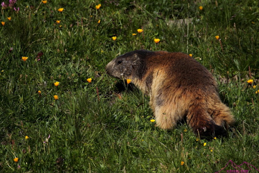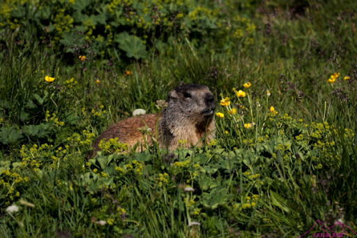 Bueno, como ya me he acostumbrado a las largas jornadas no me importaba, a seguir disfrutando….»More kilometres, more fun..»dice Kilian, pues eso a disfrutar. Sendero que sube cruzando pistas y remontes de esquí, fácil, agradable y con marmotas, así que pierdo mucho tiempo tirando fotos y disfrutando de estos animalillos.