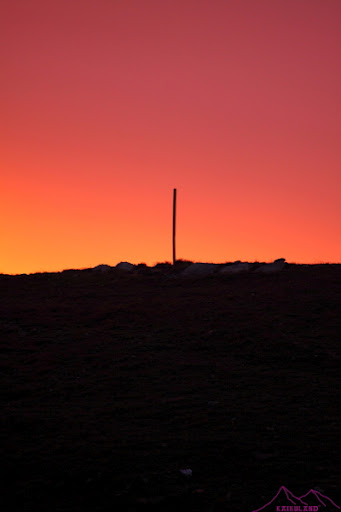 Llego a una señal vertical que me indica que me faltan 40 min para llegar al collado, me duelen las piernas, estoy mojado y con ganas de llegar al refugio.