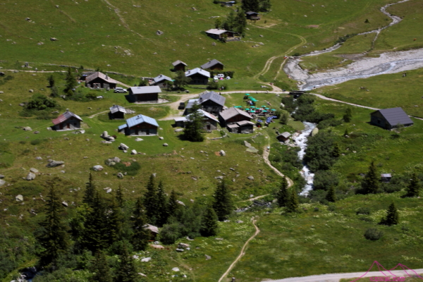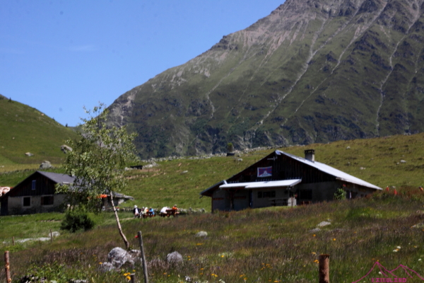 Al dejar el refugio hay que subir 5min hasta el Col de Croix de Bonhome y de ahí bajar todo el valle hasta Les Contamines, al refugio/chalet Nant de Barrant. Es una bajada fácil, agradable pero larga.