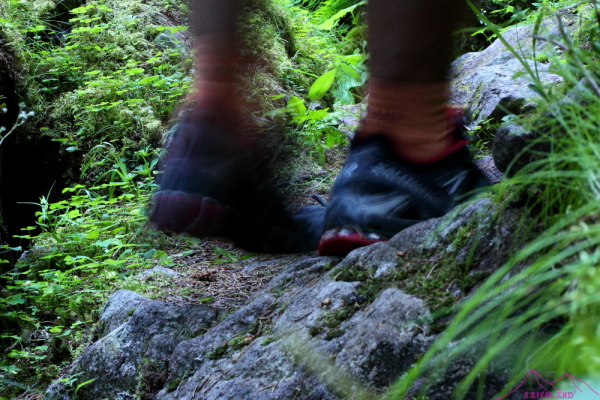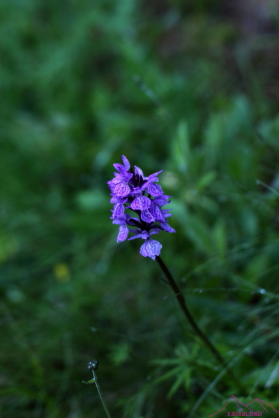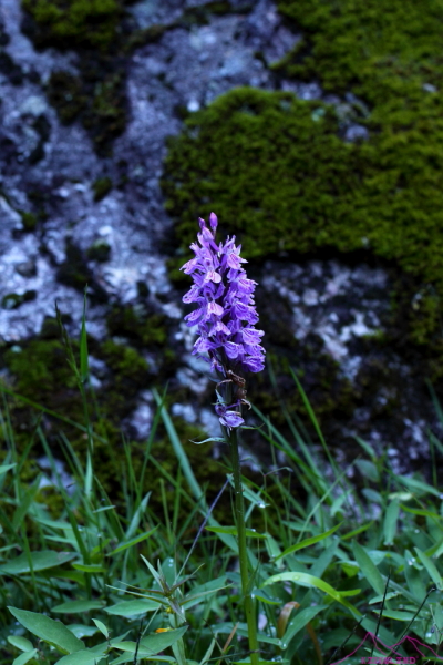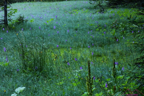 En un momento dado, a mitad de camino, el sendero aparece desbrozado, algo que agradezco para no mojarme tanto las zapas. Lo han desbrozado hace muy poco. Disfruto de las orquídeas, pequeñas pero muy llamativas que, en ocasiones aparecen en grandes grupos formando una imagen preciosa.