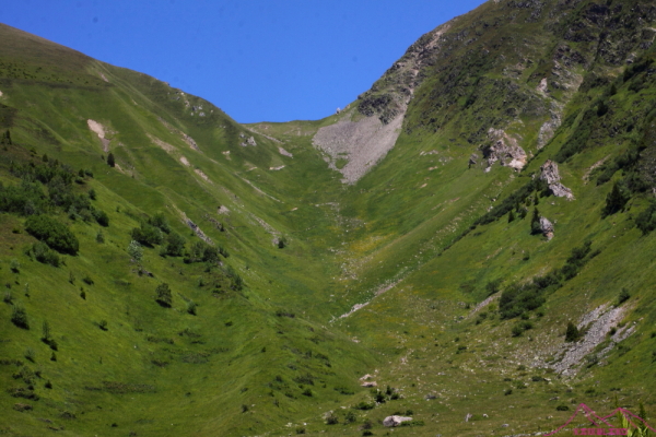 Desde Bionassay 1313m, donde paro media hora a reponer agua y fuerzas, me queda una hora hasta el Col de Volza, hace mucho calor, pero voy por una pista forestal, es cómoda y cumpliendo con el horario llego a la hora prevista al Col de Volza 1663m.