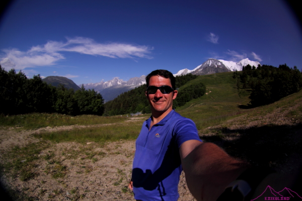 Al final llego al Refugio Truc 1720m, la parte alta de una pequeña montaña desde donde se ven unas magníficas vistas de Aiguille de Bionnassay un cordal directo del Mont Blanc. Se ve perfectamente el glaciar y a lo lejos un collado, Col de Tricot 2120m, que es el que debería subir y bajar pero al final me decidiré por evitarlo (gran error por mi parte) ya que mi rodilla sufriría mucho y no sé bien lo que me puede quedar, hay que guardar fuerzas y cuerpo. Como un par de barritas energéticas.