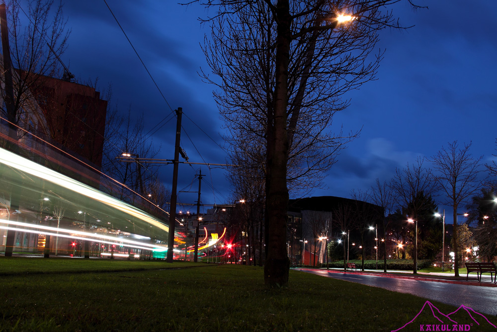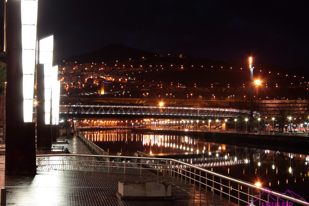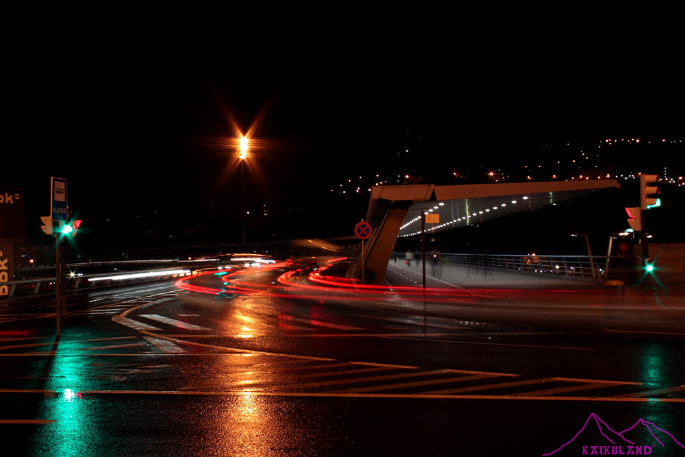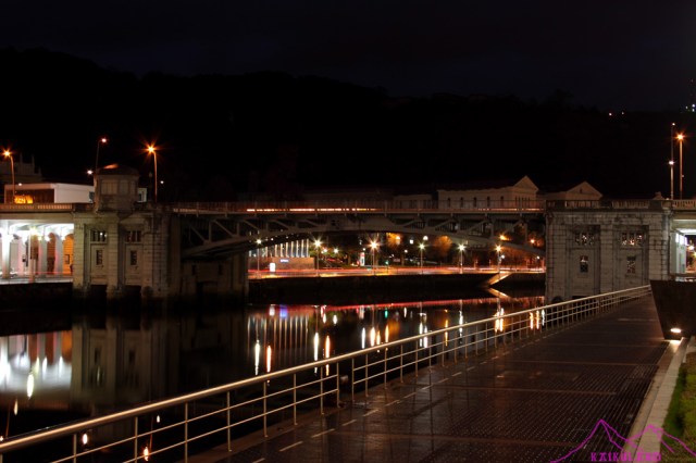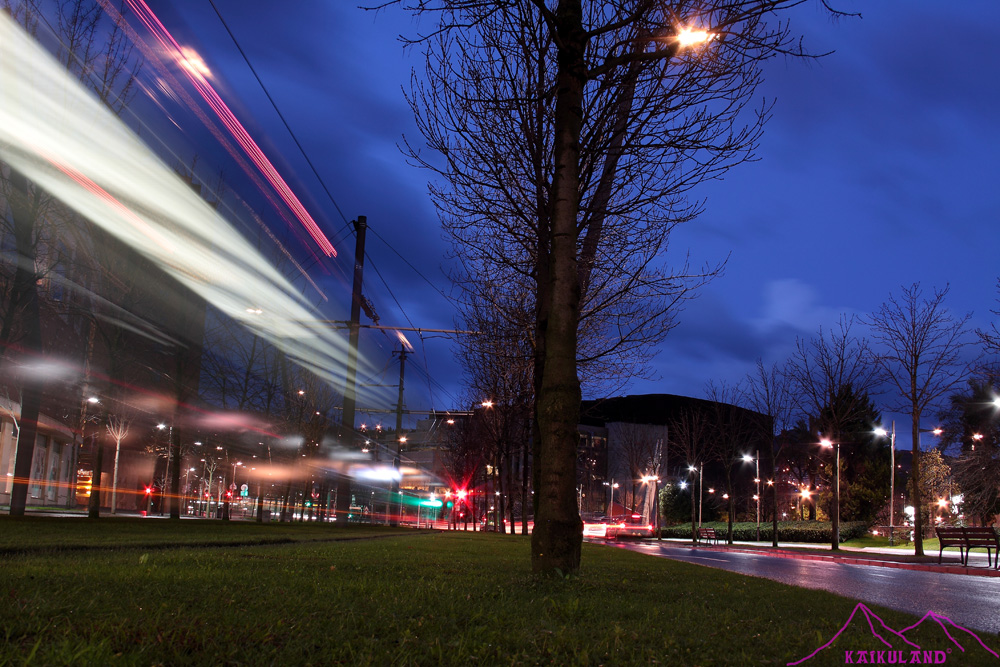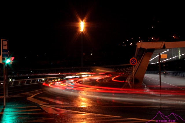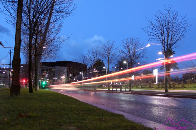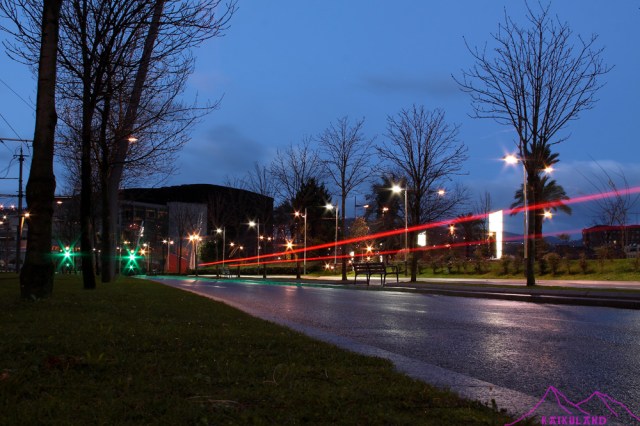 Madrugar mucho supone que si estás en un hotel te aburres, así que nada mejor que levantarse de la cama, coger la cámara, el trípode y salir a hacer fotos, a practicar técnicas que en otras situaciones no puedes. en este caso empiezo la mañana buscando exposiciones largas para captar el movimiento de los coches, las luces, la vida a primera hora de la mañana en una ciudad como Bilbao. Lo malo es que no conocía mucho la ciudad e improvisé sobre la marcha, según andaba iba buscando las localizaciones y ángulos sobre los que hacer la fotografía; aun así me gusta ver esa actividad mañanera sin estar vinculada a ella, madrugar sin prisas es un placer, es un experimento sociológico donde puedes analizar a la gente que se mueve, generalmente por trabajo, mientras tu vas a otra velocidad sin prisas.