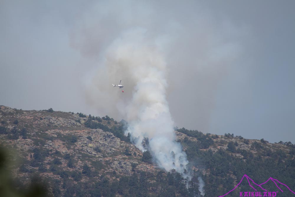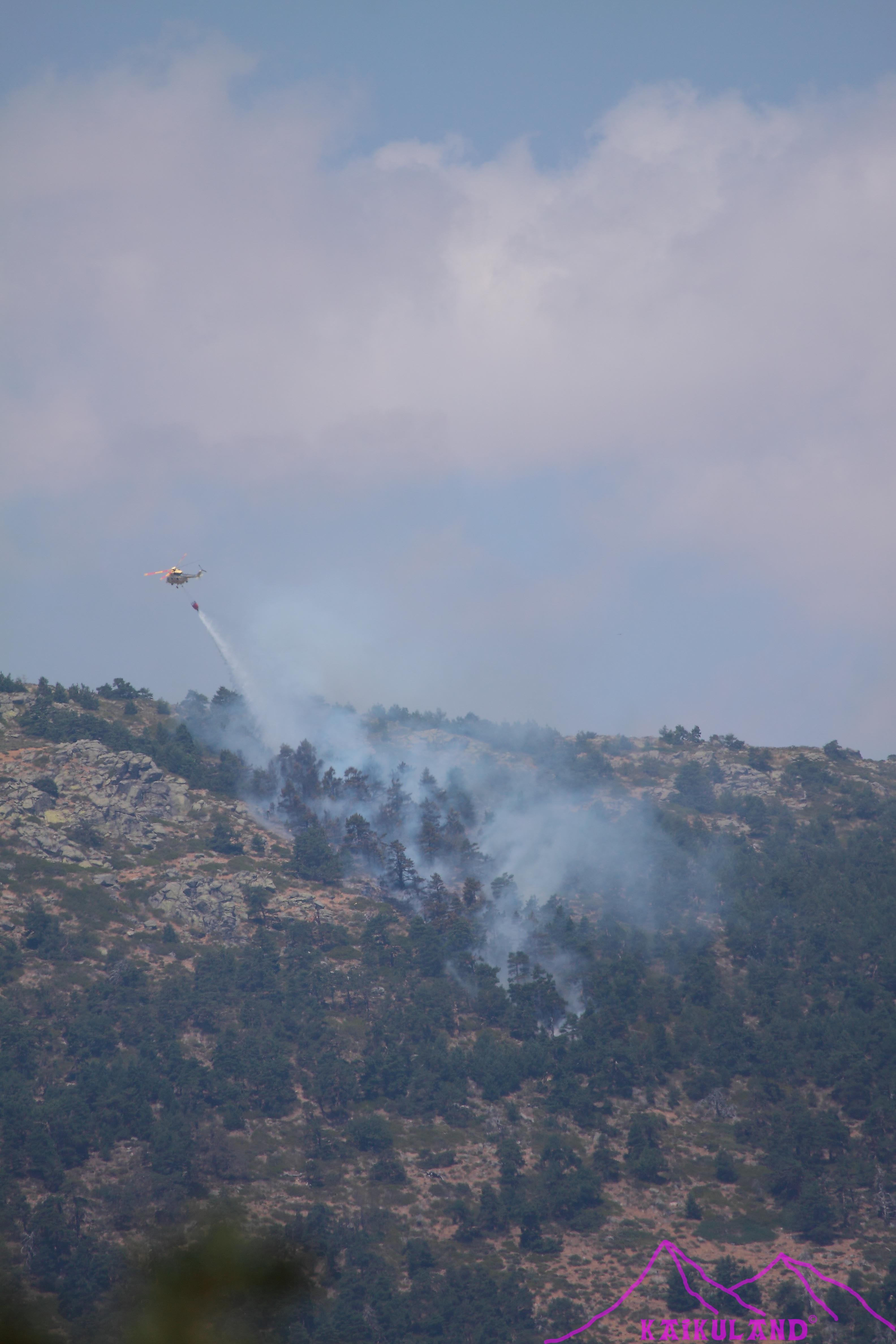 Aquí podeís ver la columna de humo y, algunas llamas, así como los helicópteros vaciando las cestas de agua que consiguieron sofocar el incendio, afortunadamente…