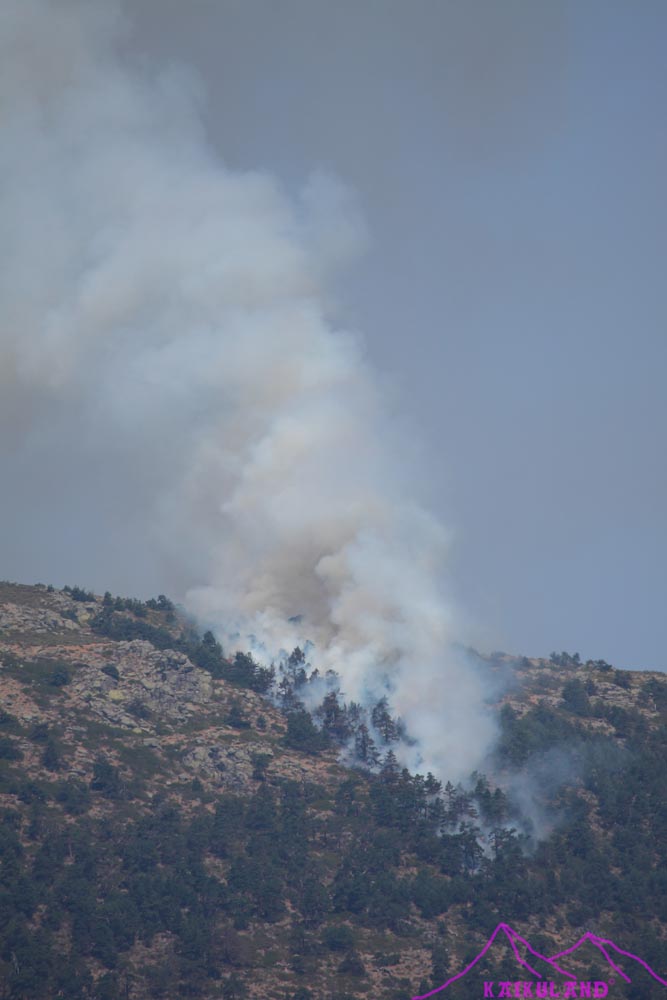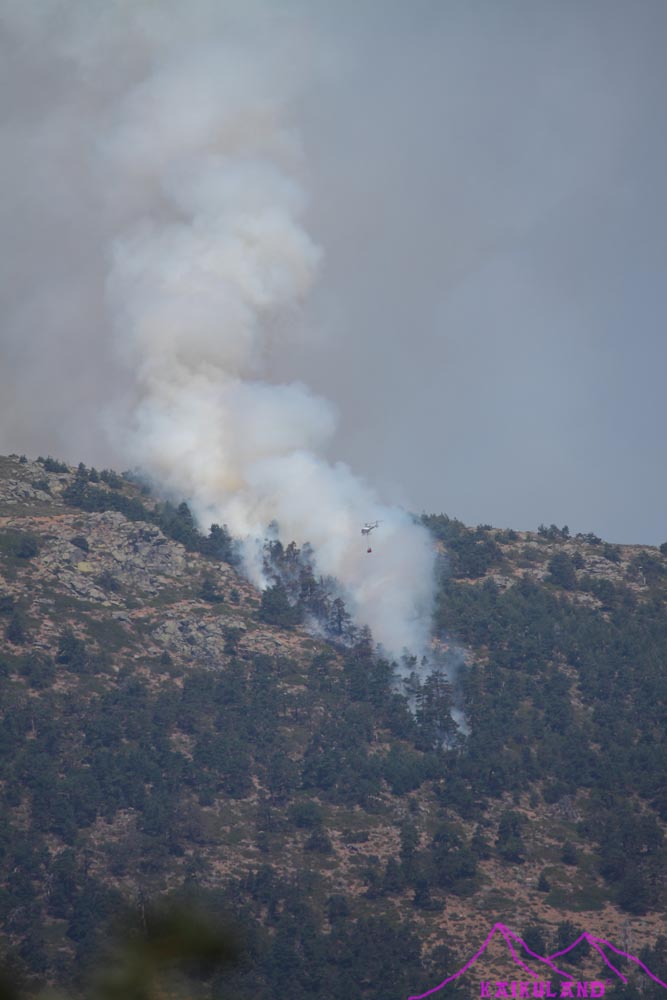 Al día siguiente y pasadas las 11:30h desde la piscina puedo ver una columna de humo, en las cercanías del collado Marichiva, en el valle de la Fuenfría. Mis pensamientos me traicionaron pensando en cualquier fumador o similar que no hubiese apagado bien el cigarrillo, pero no, la causa fue de un rayo, si de esos de las fotos de más arriba, un rayo sobre un gran pino que lo quebró desde la copa hasta las raíces, dejando el fuego latente hasta la hora maldita…Esto lo supe por un amigo que trabaja en el retén y, por primera vez, se enfrentaba a un incendio de estas características, con llamas de decenas de metros y no de pasto como le había ocurrido en otras ocasiones… Al final se quemó sólo una hectárea, y justo en la parte superior, si hubiese sido más abajo el fuego hubiese subido toda la ladera quemando gran parte de ese valle…