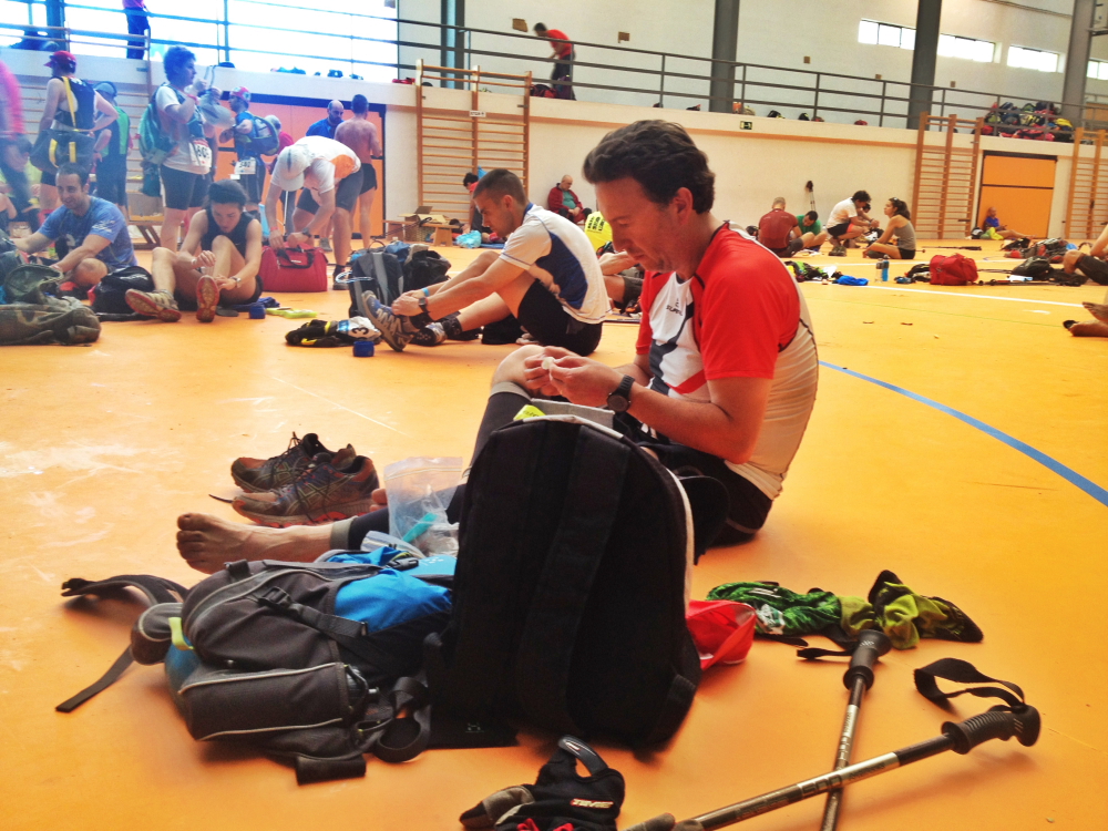 El día de la carrera me levanté a las 7 de la mañana, algo nerviosillo por lo que tocaba por la noche, se me hacía tan raro salir a esas horas, yo suelo madrugar mucho para ver amanecer pero no suelo trasnochar, tendría que dormir una buena siesta….pues eso…30min..buenísima si si… los nervios de la carrera unidos a la falta de mis zapatillas Dynafit Feline Ghost que había pedido me tenían atacado, por fin a las 19h llegaron y las pude llevar para estrenarlas en carrera, afortunadamente ya había pulido un par durante el mes que he podido salir a trotar entre los días de esquí, sabía que no me causarían problemas, aun así dejé las otras en la bolsa de Rascafría por si me daban problemas, poder cambiármelas.