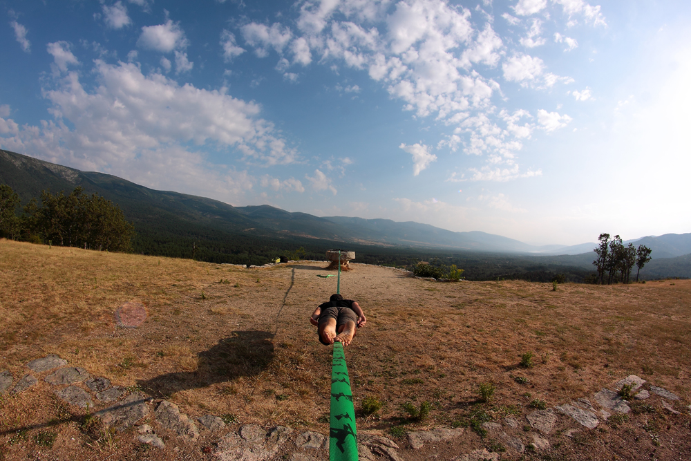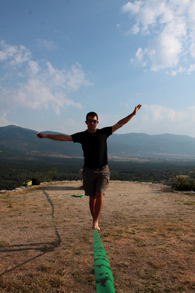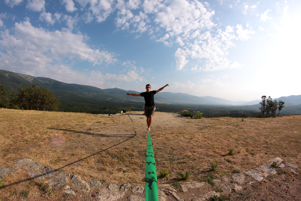 Así que hoy, antes de trabajar he puesto la cinta en el monumento al Forestal del Mirador de los Robledos, en el valle de los Robledos y he tirado unas fotos mientras trataba de mejorar mi equilibrio.