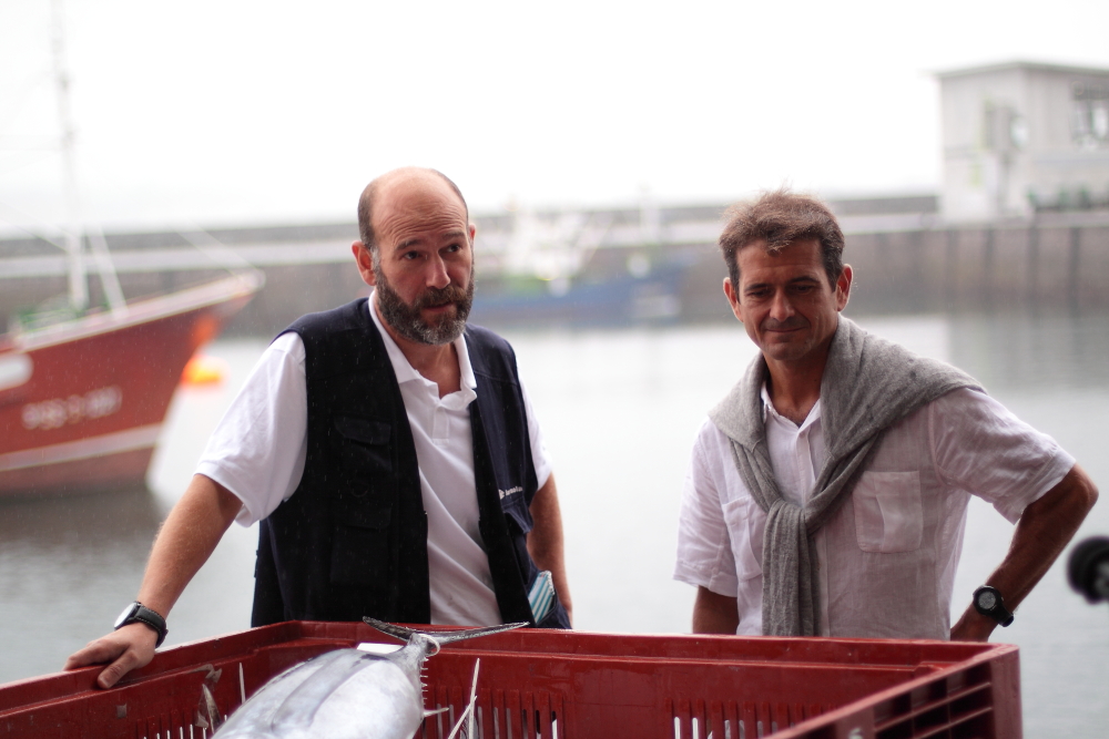 El lunes a las 6 en punto estamos en el puerto de Hondarribia, la intención es ver una descarga de bonito del norte, una subasta en la lonja y conocer a fondo la procedencia del producto que posteriormente se envasa o se come en fresco. Durante unas horas estamos inmersos en un mundo de pescadores, tratantes, pescaderos, al por menor y al por mayor, ruidos, olores, gestos, sensaciones que para alguien de montaña como yo se me hacen extrañas pero me encanta vivir.